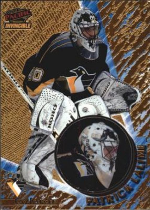 The Patrick Lalime 1997 Pacific Invincible #114 Base card is 1 of 8 Patrick Lalime's card variations in the 1997 Pacific Invincible set being tracked by Sports Card Investor, including Copper, Emerald Green, Ice Blue, Red, and Silver.