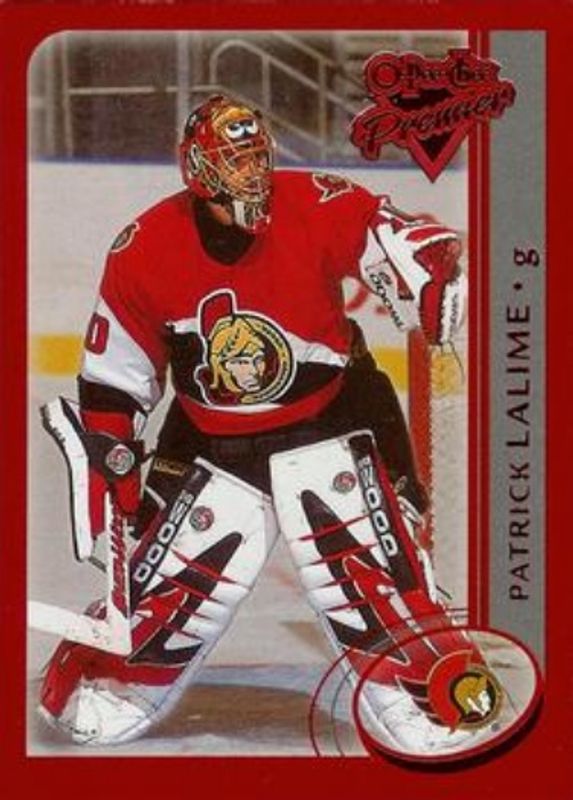 The Patrick Lalime 2002 O-Pee-Chee #61 O-Pee-Chee Premier Red Line /100 card is 1 of 6 Patrick Lalime's card variations in the 2002 O-Pee-Chee set being tracked by Sports Card Investor, including Base, Factory Set, Factory Set Hometown Heroes Canada, O-Pee-Chee Premier Blue Line /500, and Hometown Heroes Canada.