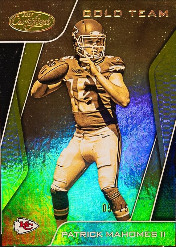 Patrick Mahomes II 2017 Certified #GT-PM Gold Team - Mirror Gold /25 Rookie RAW Price Guide
