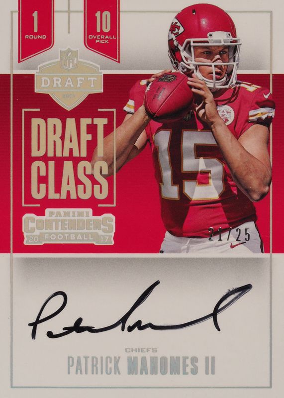 Patrick Mahomes II 2017 Contenders #DC-PM Draft Class Autographs (/25) Rookie RAW Price Guide