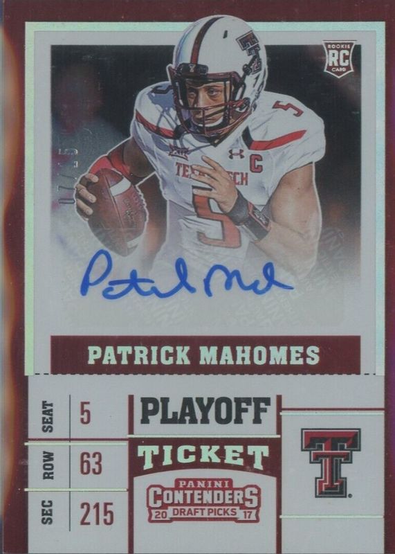 Patrick Mahomes II 2017 Contenders Draft Picks #298 College Ticket Auto - Playoff /15 Rookie RAW Price Guide