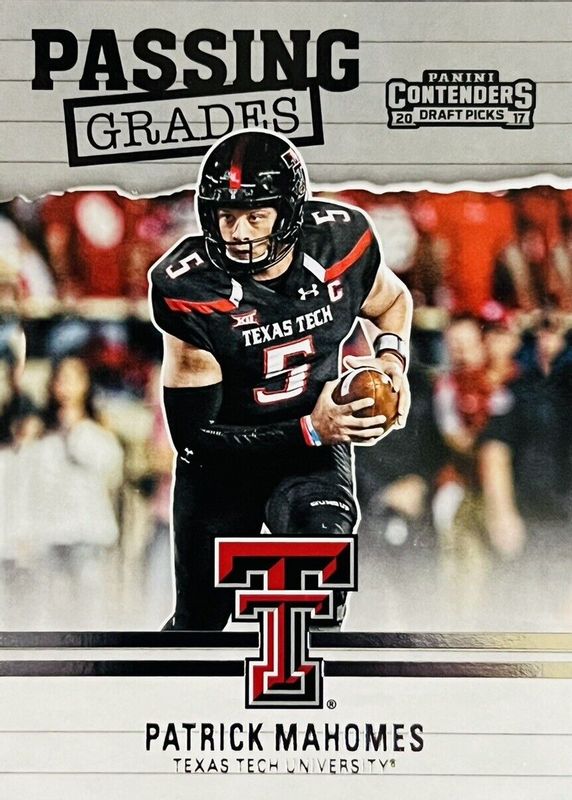 The Patrick Mahomes II 2017 Contenders Draft Picks #5 Passing Grades Rookie card in Raw condition has moved up $1.57 (+13.3%) in the last 30 days and was last sold for $13.32 .