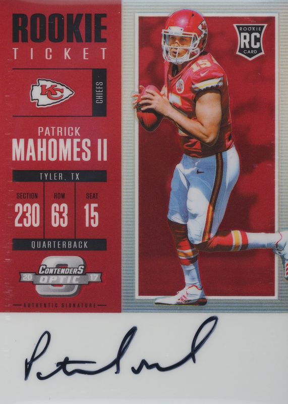 Patrick Mahomes II 2017 Contenders Optic #103 Rookie Ticket Auto - Red /75 RAW Price Guide