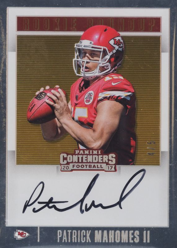 Patrick Mahomes II 2017 Contenders #RR-PM Rookie Roundup Autographs - Gold (/5) PSA 7 Price Guide
