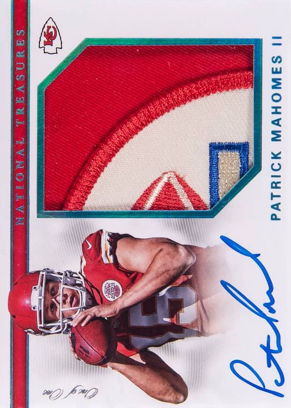 This card is 1 of 57 Patrick Mahomes II's card variations in the 2017 National Treasures set being tracked by Sports Card Investor, including Rookie Material Signatures - Green Jersey Numbers (/15), Rookie NFL Gear Signature Combos (/99), Rookie NFL Gear Signature Trios (/99), Rookie Patch Auto - Green Jersey Number (/15), and Rookie Colossal Signatures /99.