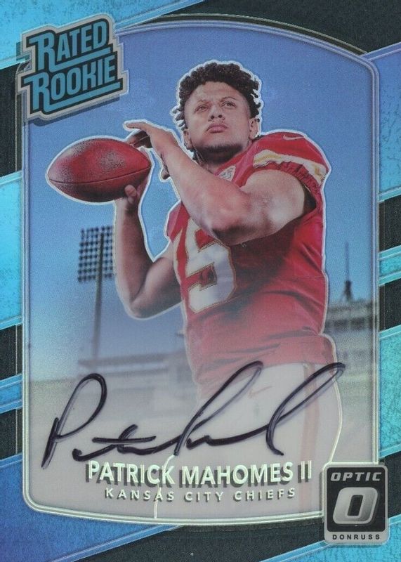 The Patrick Mahomes II 2017 Optic #177 Rated Rookie Autographs - Black /25 card in Raw condition has not changed in price in the last 30 days and was last sold for $6,333.33 .