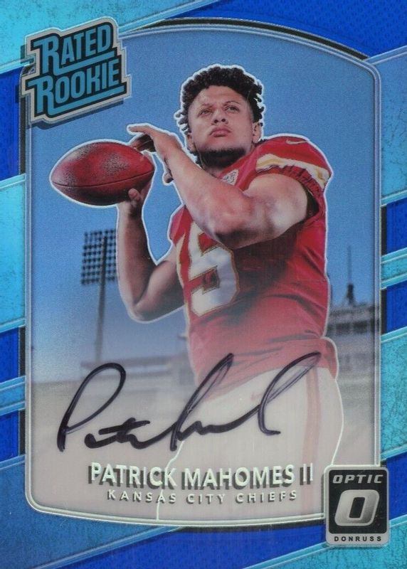 The Patrick Mahomes II 2017 Optic #177 Rated Rookie Autographs - Blue /75 card in Raw condition has not changed in price in the last 30 days and was last sold for $5,000.00 .