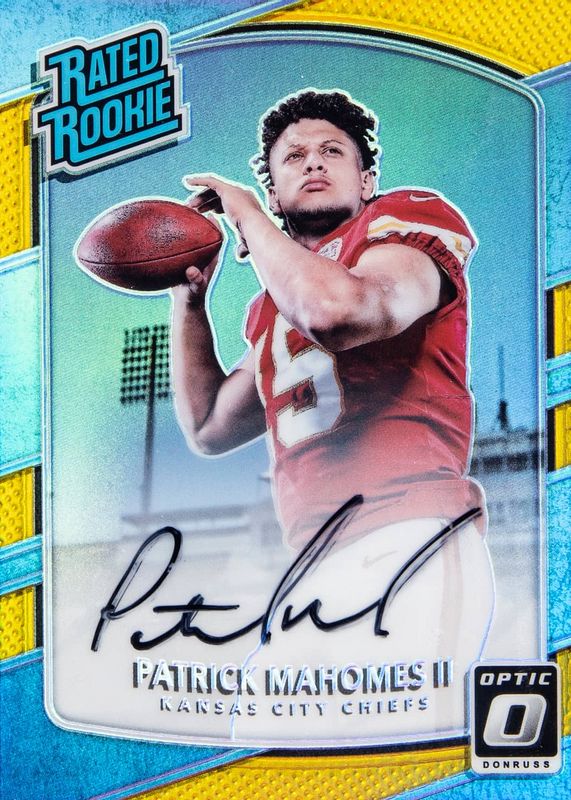 Auctions Ending Soon for Patrick Mahomes II 2017 Optic #177 Rated Rookie Autographs - Gold /10 RAW