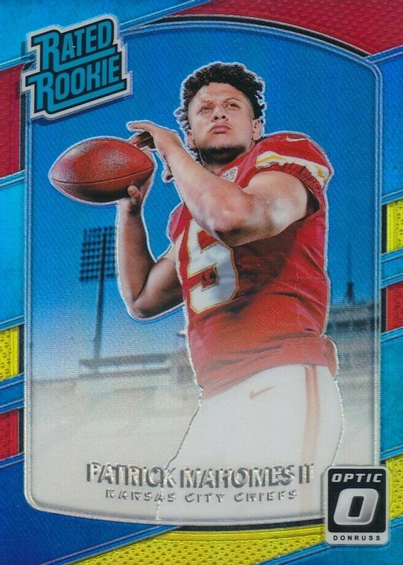 The Patrick Mahomes II 2017 Optic #177 Red & Yellow Rookie card in Raw condition has moved up $236 (+42.2%) in the last 30 days and was last sold for $796.18 .