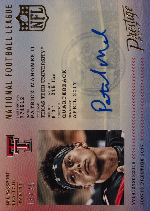 Patrick Mahomes II 2017 Prestige #5 NFL Passport Ink /25 Rookie RAW Price Guide