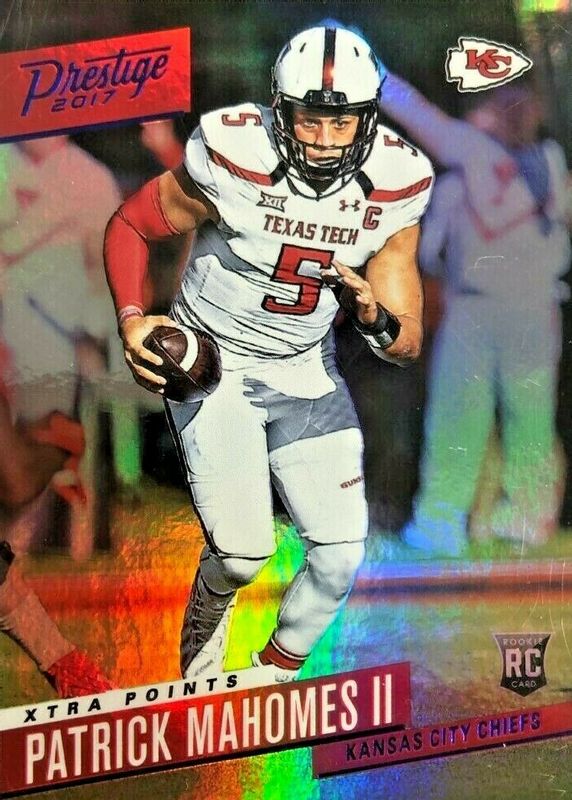 This card is 1 of 31 Patrick Mahomes II's card variations in the 2017 Prestige set being tracked by Sports Card Investor, including Base, Xtra Points Red, Xtra Points Green /150, Xtra Points Purple /100, and Xtra Points Gold /50.