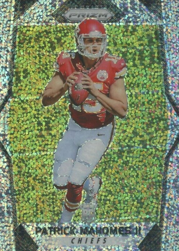 This card is 1 of 60 Patrick Mahomes II's card variations in the 2017 Prizm set being tracked by Sports Card Investor, including Disco, Green, Pink, Red White Blue, and Silver.