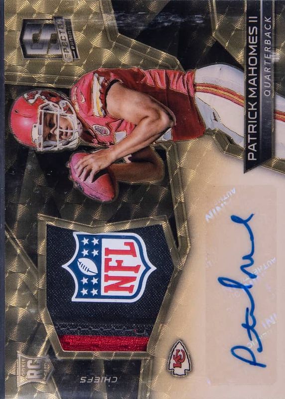 Patrick Mahomes II 2017 Spectra #204 Rookie Patch Auto - Gold NFL Shield /1 RAW Price Guide