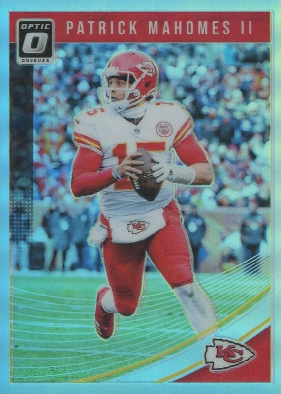 The Patrick Mahomes II 2018 Optic #49 Holo card in Raw condition has moved up $4.00 (+10.0%) in the last 30 days and was last sold for $44.00 .