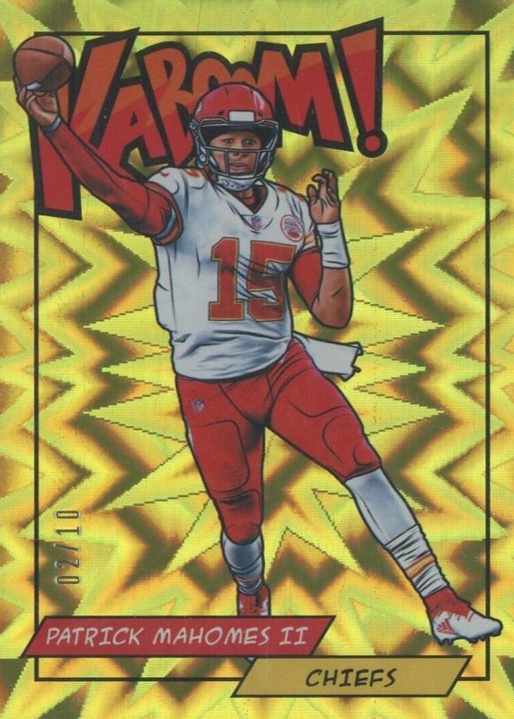 Best Prices Available For Sale of Patrick Mahomes II 2018 Panini Rewards #K-PMA Kaboom! - Gold /10