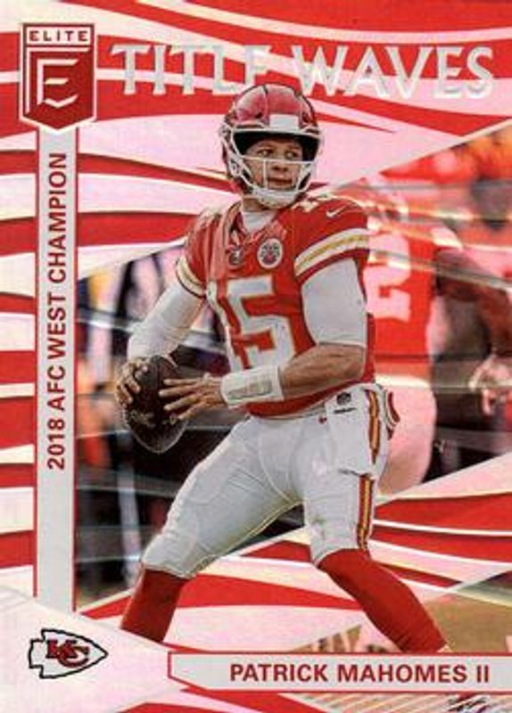 The Patrick Mahomes II 2019 Elite #TW-3 Title Waves card is 1 of 119 Patrick Mahomes II's card variations in the 2019 Elite set being tracked by Sports Card Investor, including Green, Red /299, Purple /99, Orange /49, and Status Die-Cut /24.