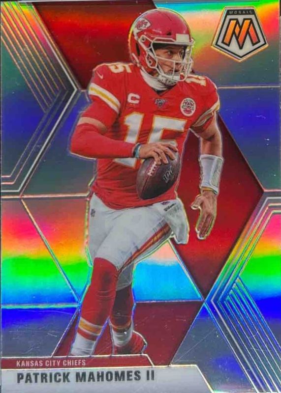 The Patrick Mahomes II 2020 Mosaic #1 Silver card in Raw condition has moved up $2.62 (+111%) in the last 30 days and was last sold for $4.99 .
