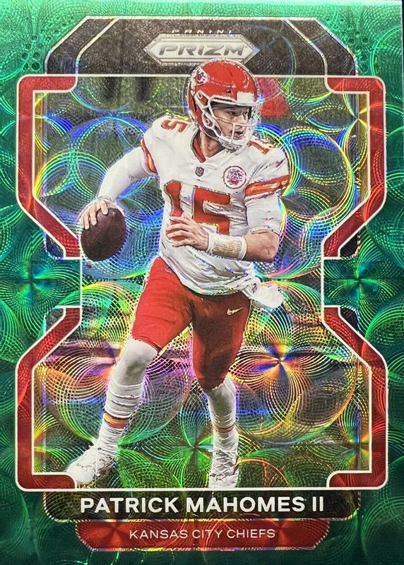 This card is 1 of 48 Patrick Mahomes II's card variations in the 2021 Prizm set being tracked by Sports Card Investor, including Base, Disco, Green, Green Ice, and Lazer.