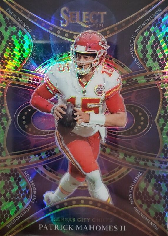 Patrick Mahomes II 2021 Select #PHE-1 Phenomenon - Green & Black Snakeskin /2 RAW Price Guide