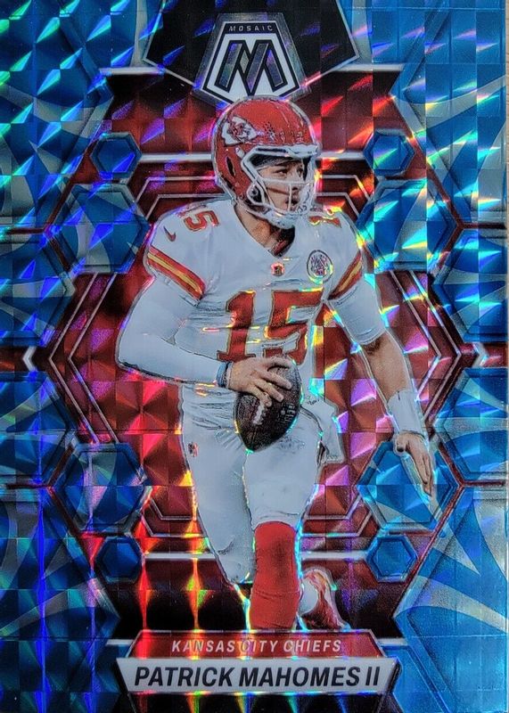 Patrick Mahomes II 2023 Mosaic Reactive Blue Prizm Parallel Chiefs No 109
