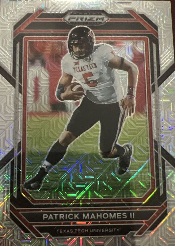 This card is 1 of 31 Patrick Mahomes II's card variations in the 2023 Prizm Draft Picks set being tracked by Sports Card Investor, including Base, Gold Ice, Green, Purple Wave, and Red Ice.