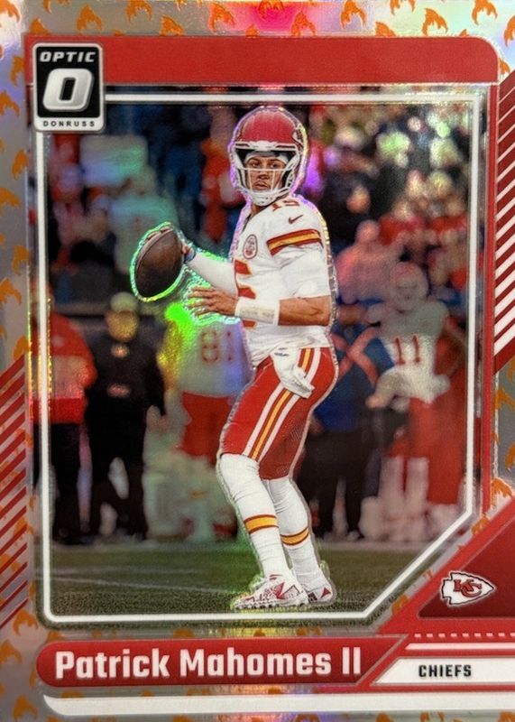 Best Prices Available For Sale of Patrick Mahomes II 2024 Optic #94 Fire /(SSP)