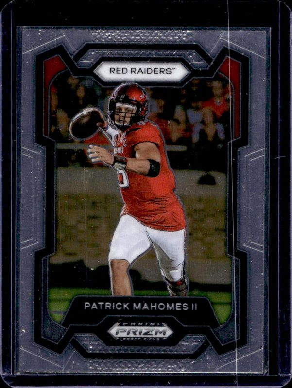 The Patrick Mahomes II 2024 Prizm Draft Picks #61 Base card is 1 of 31 Patrick Mahomes II's card variations in the 2024 Prizm Draft Picks set being tracked by Sports Card Investor, including Green, Purple Wave, Red Ice, Ruby Wave, and Silver.