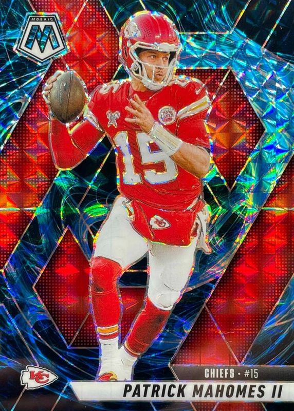 This card is 1 of 38 Patrick Mahomes II's card variations in the 2025 Mosaic set being tracked by Sports Card Investor, including Orange /199, Silver Knight /149, Blue /99, No Huddle Blue /99, and Blue Sparkle /96.