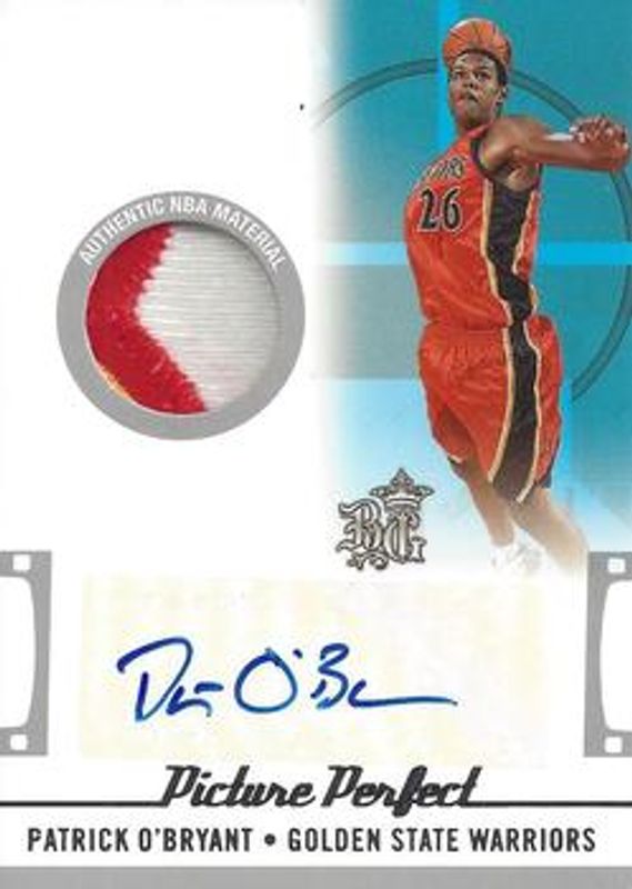 The Patrick O'Bryant 2006 Topps Big Game #PPPA-PO Picture Perfect Patches Autographs /99 Rookie card is 1 of 28 Patrick O'Bryant's card variations in the 2006 Topps Big Game set being tracked by Sports Card Investor, including Base /579, Red /129, Blue /59, Gold /1, and Draft Day Moments Logos.