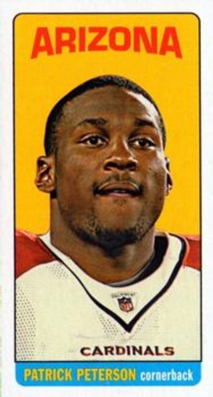 The Patrick Peterson 2012 Topps #69 1965 - Mini card is 1 of 12 Patrick Peterson's card variations in the 2012 Topps set being tracked by Sports Card Investor, including Base, Gold /2012, Camo /399, Pink /399, and Orange /86.