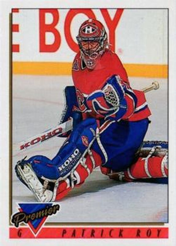The Patrick Roy 1993 O-Pee-Chee Premier #1 Pre Production Samples card is 1 of 4 Patrick Roy's card variations in the 1993 O-Pee-Chee Premier set being tracked by Sports Card Investor, including Base, Gold, and Black Gold.