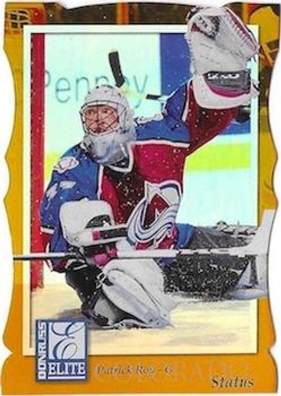 The Patrick Roy 1997 Donruss Elite #14 Status /100 card is 1 of 23 Patrick Roy's card variations in the 1997 Donruss Elite set being tracked by Sports Card Investor, including #14 Base, #142 Base, #142 Aspirations, #14 Aspirations, and #2a Prime Numbers Promos.