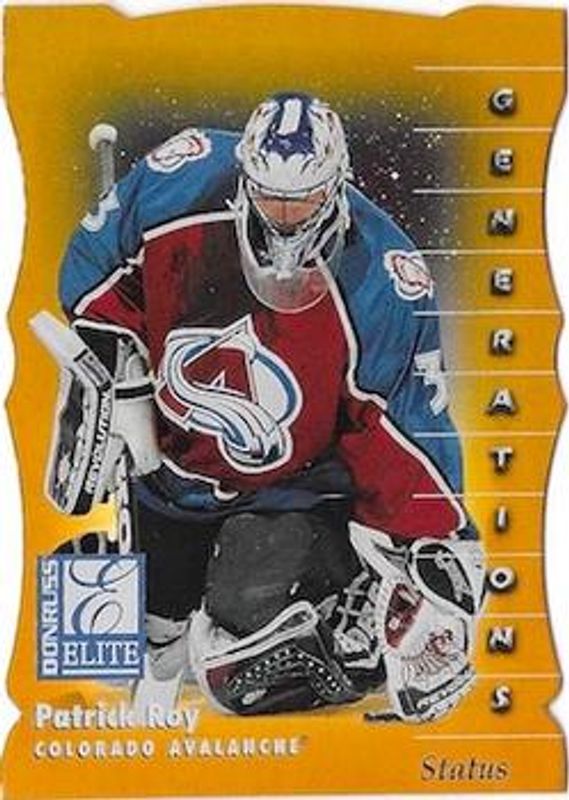 The Patrick Roy 1997 Donruss Elite #142 Status /100 card is 1 of 23 Patrick Roy's card variations in the 1997 Donruss Elite set being tracked by Sports Card Investor, including #14 Base, #142 Base, #142 Aspirations, #14 Aspirations, and #2a Prime Numbers Promos.