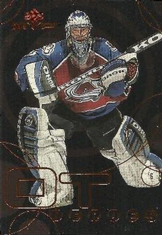The Patrick Roy 1998 Upper Deck MVP #OT02 OT Heroes card is 1 of 7 Patrick Roy's card variations in the 1998 Upper Deck MVP set being tracked by Sports Card Investor, including Base, Silver Script, Gold Script /100, Super Script /25, and Special Forces.