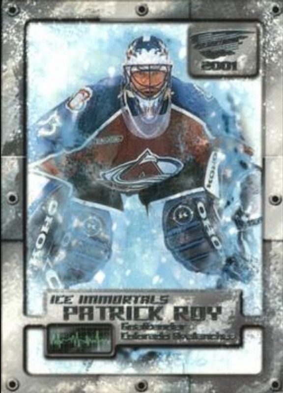 The Patrick Roy 2000 Pacific Revolution #6 Ice Immortals card is 1 of 8 Patrick Roy's card variations in the 2000 Pacific Revolution set being tracked by Sports Card Investor, including Base, Red /99, Shadow Series Blue /85, Premiere Date /60, and HD NHL.