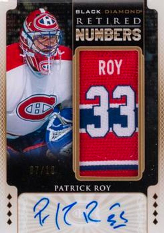 Patrick Roy 2015 Upper Deck Black Diamond #RN-PR Retired Numbers Autographs /49 RAW Price Guide