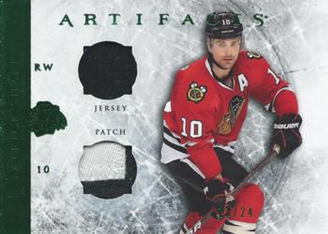 Patrick Sharp 2012 Upper Deck Artifacts #72 Jersey Patch Emerald Horizontal /24 RAW Price Guide