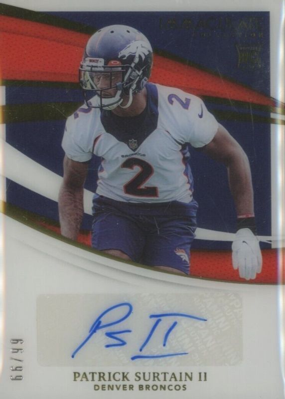 This card is 1 of 3 Patrick Surtain II's card variations in the 2021 Immaculate set being tracked by Sports Card Investor, including Rookie Autographs - Gold /25, and Rookie Autographs - Platinum /1.