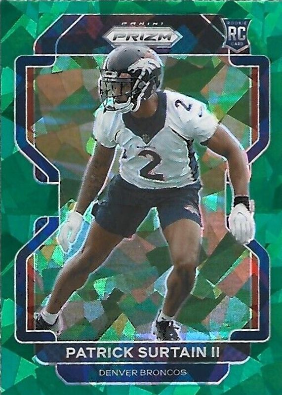 2021 Patrick Surtain II Prizm Green Cracked Ice Prizm RC SSP #374 Denver Broncos