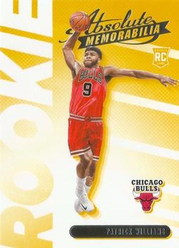 The Patrick Williams 2020 Absolute Memorabilia #4 Rookies - Yellow card is 1 of 55 Patrick Williams' card variations in the 2020 Absolute Memorabilia set being tracked by Sports Card Investor, including Base, Dollar Tree, Retail, Red /199, and Blue /99.
