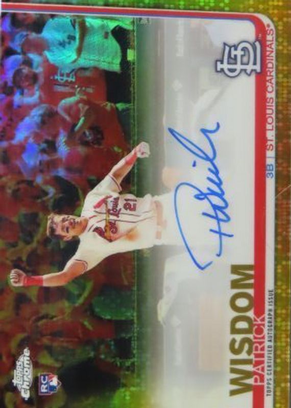The Patrick Wisdom 2019 Topps Chrome #RA-PW Rookie Auto - Gold Refractor /50 card in Raw condition has not changed in price in the last 30 days and was last sold for $9.61 .