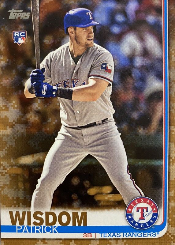 The Patrick Wisdom 2019 Topps #578 Memorial Day Camo /25 Rookie card in Raw condition has not changed in price in the last 30 days and was last sold for $11.50 .