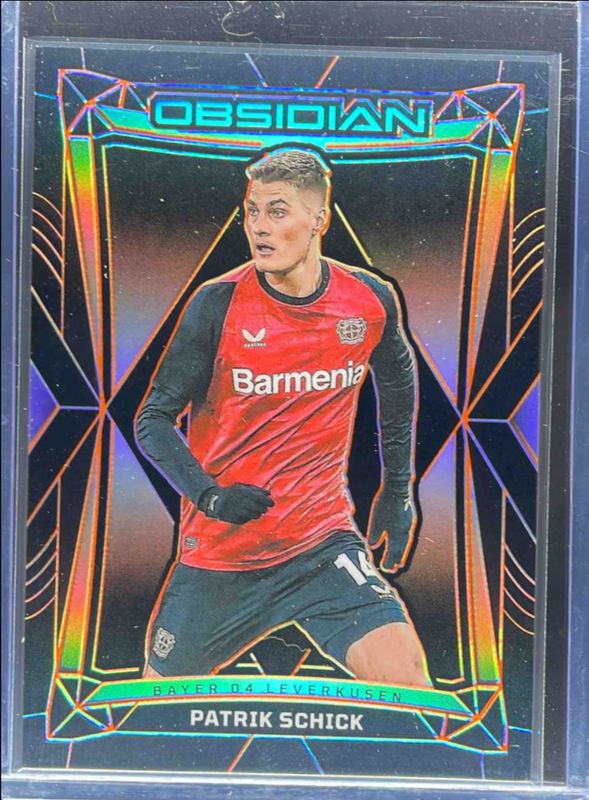 The Patrik Schick 2024 Obsidian #22 Electric Etch Orange /40 card is 1 of 17 Patrik Schick's card variations in the 2024 Obsidian set being tracked by Sports Card Investor, including Base /145, Electric Etch Red Pulsar /44, Electric Etch Purple Flood /30, Electric Etch Imperial Jade /26, and Electric Etch Blue /20.