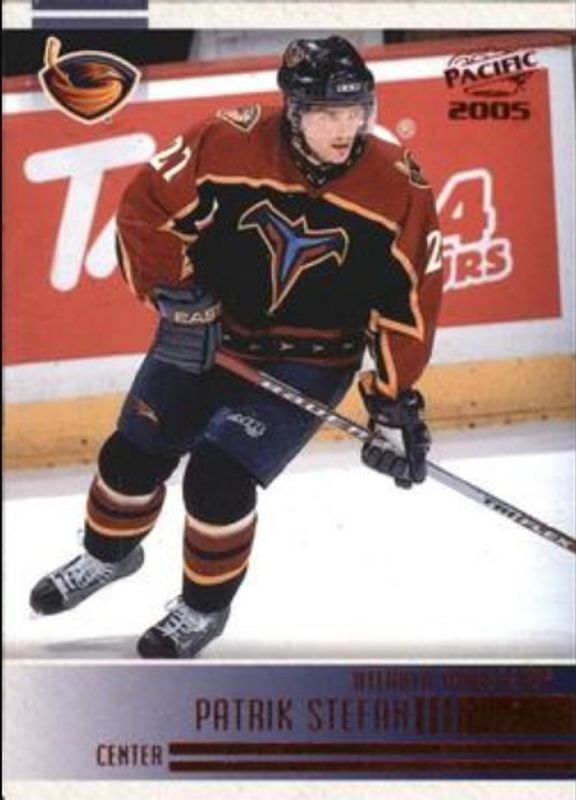 The Patrik Stefan 2004 Pacific #18 Red card is 1 of 3 Patrik Stefan's card variations in the 2004 Pacific set being tracked by Sports Card Investor, including Base, and Blue /250.