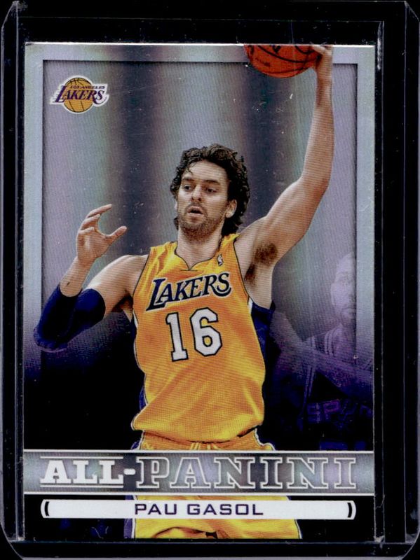 The Pau Gasol 2013 Panini #70 All Panini card is 1 of 9 Pau Gasol's card variations in the 2013 Panini set being tracked by Sports Card Investor, including Base, Gold Knights, Red Knights, Black Knights /1, and All Panini - Gold.