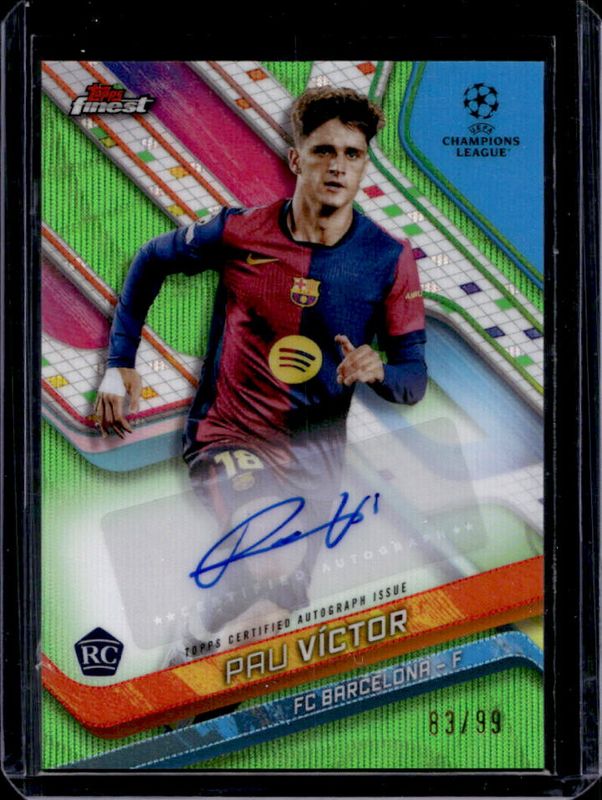 Pau Victor 2024 Topps Finest UEFA Club Competitions #BA-PV Base Autographs - Neon Green Wave Refractor /99 RAW Price Guide