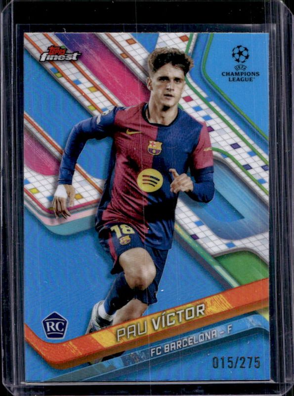 The Pau Victor 2024 Topps Finest UEFA Club Competitions #87 Sky Blue Refractor /275 card is 1 of 42 Pau Victor's card variations in the 2024 Topps Finest UEFA Club Competitions set being tracked by Sports Card Investor, including Base, Refractor, Purple Refractor /299, Pink RayWave Refractor /250, and Purple Lava Refractor /199.