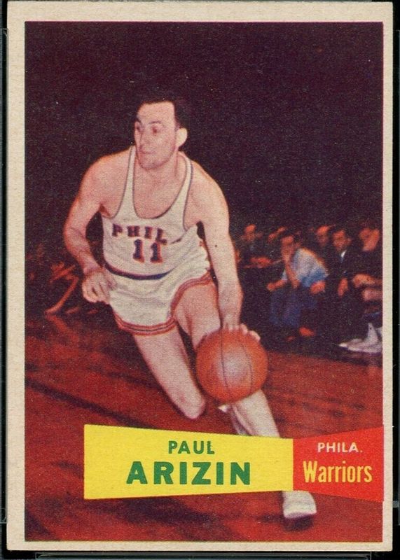 Other popular players in the 1957 Topps set include Al Bianchi, Andy Phillip, Arnie Risen, Art Spoelstra, and Bill Russell.