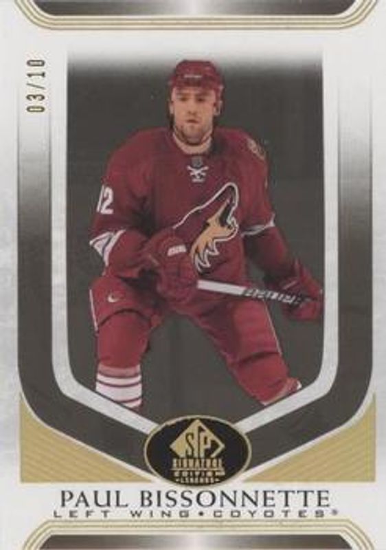 The Paul Bissonnette 2020 SP Signature Edition Legends #162 Black /10 card is 1 of 9 Paul Bissonnette's card variations in the 2020 SP Signature Edition Legends set being tracked by Sports Card Investor, including Base /99, Gold Foil, Gold Spectrum Foil Autographs /25, 2019 Upper Deck Chronology Update: Franchise History Autographs, and Life After Hockey.