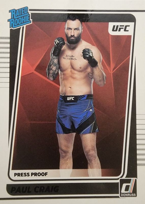 The Paul Craig 2022 Donruss UFC #202 Press Proof Purple Rookie card in Raw condition has not changed in price in the last 30 days and was last sold for $1.00 .